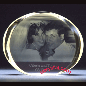 A 50th wedding anniversary is traditionally celebrated with personalized 50th wedding anniversary crystal gifts. The example on the left is to celebrate their 50th wedding anniversary. Children are often looking for 50th wedding anniversary crystal gifts for their parents. This vivid scene from 50 years ago was laser etched inside this beautiful photo crystal. Half a century has gone by, but their love has never faded. Does it feel like yesterday? This extra large oval-shaped laser photo crystal is very popular as a wedding anniversary or Valentine’s Day gift.